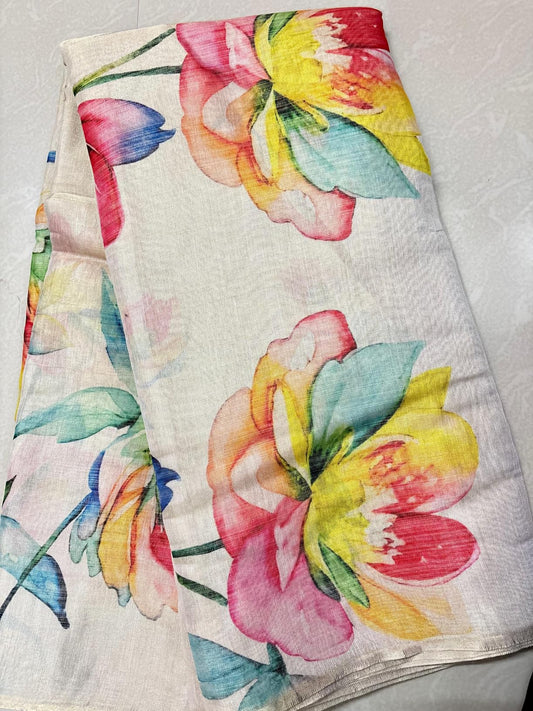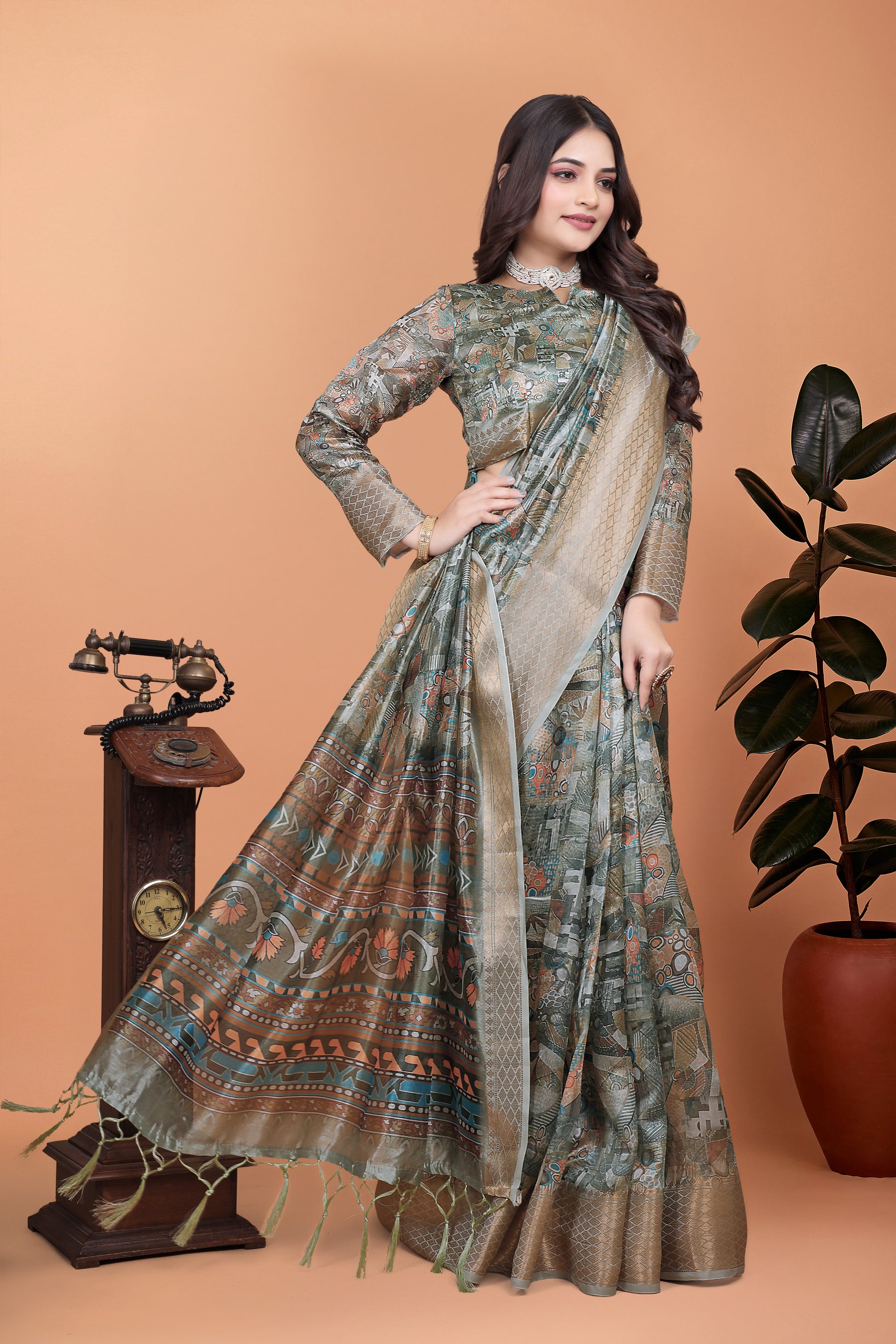 Elegant Multicolor Soft Silk Saree With Ethnic Digital Print For Women